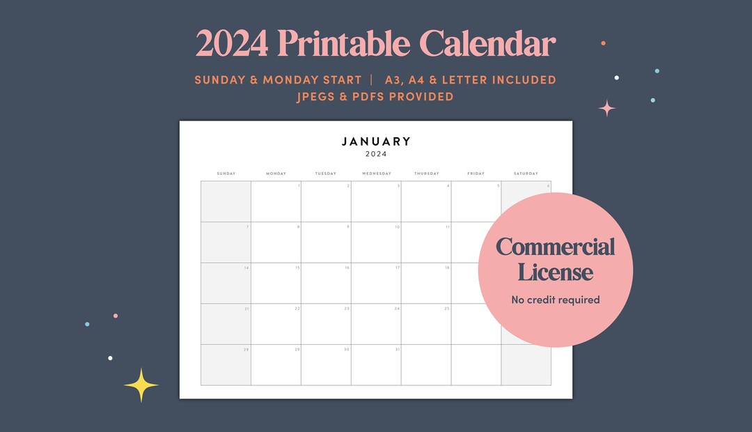 2024 Commercial License Calendar, Commercial Printable Calendar